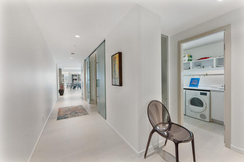 The interiors are thoughtfully designed with elegant hardwood flooring, custom cabinetry, and top-of-the-line appliances. The gourmet kitchen features premium stainless steel appliances and a built-in coffee maker for effortless mornings. Spa-inspired bathrooms combine natural stone, wood, and contemporary finishes to create a relaxing retreat within your own home.