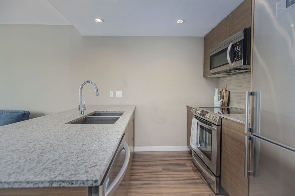 Live at Local. Functional open floor plan with lot of closet space, ensuite bathroom with shower, soak tub and quartz counters. The kitchen is equipped with stainless steel appliances, flat cabinetry, granite counters and mosaic backsplash. This sough after building has amazing finish and ample amenities featuring: rooftop terrace and garden/ BBQ, entertainment lounge, fitness centre, bike storage and guest suite, workshop and more. The property also comes with 1 parking and a storage for your convenience. 1 year unfurnished lease is available from June 1.