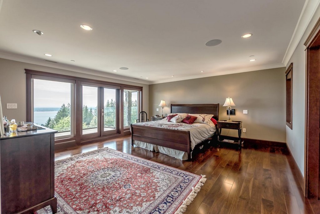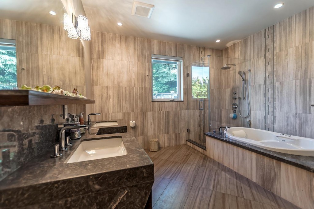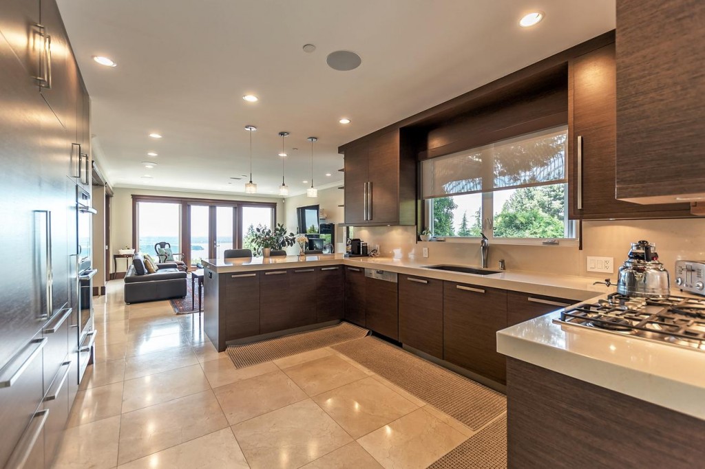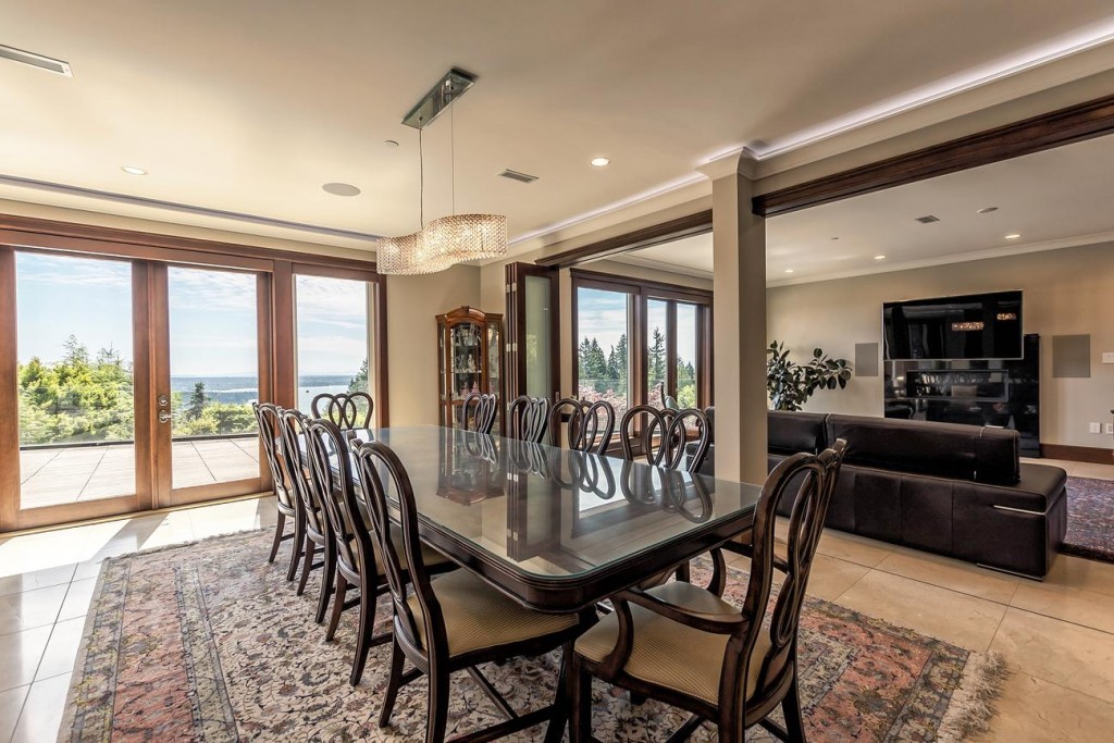 An exquisite and thoughtfully designed 7,726 square feet mansion, you know that you are in for a luxurious experience. It has a modern structure and built with high quality materials, you can’t go wrong with this home that it’s such a beauty whether day or night. At almost every corner, there’s a floor-to-ceiling window that offers you bright and natural light by day, and relaxing vibe at night. With an open floor plan in mind, expect every area to be accessible to the other. An airy and spacious living room with an easy access to a beautiful view of the downtown, Lions Gate Bridge, Stanley Park, and the ocean, it sounds perfect for both entertainment and relaxing with family. A fireplace has been provided, and seems to compliment the floor-to-ceiling door and window at the end of the room. The dining area proves to be an extended space for entertainment because of its open design and easy access to the living room and outdoor area. You won’t run out of space and storage in this home’s modern and sleek-looking kitchen with surrounding windows to provide you natural light. Feel free to explore with its roomy counters for whipping something up or simply easy dining for two. A mini dining area is located at the corner near the kitchen and just beside the outdoors for that scaled down dining experience.