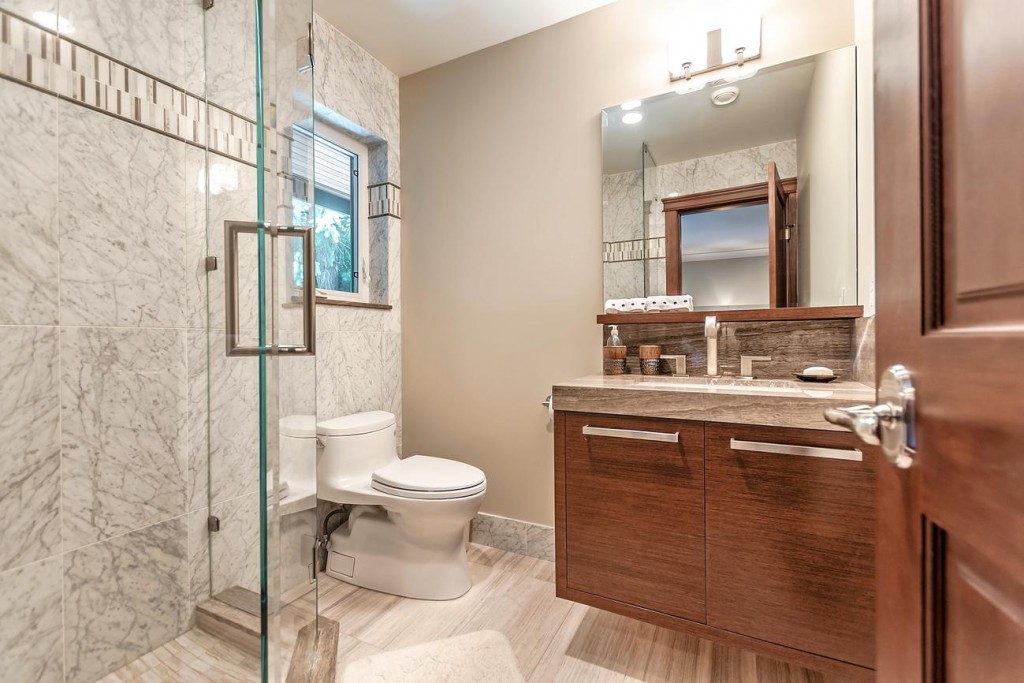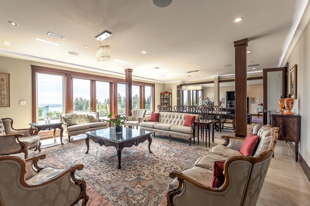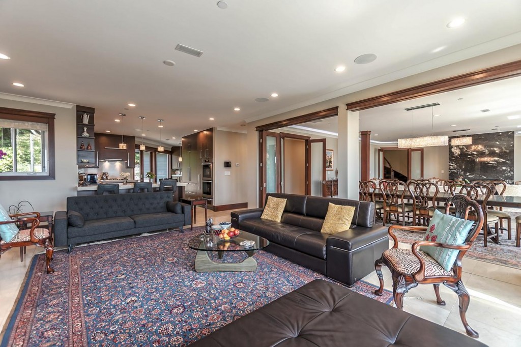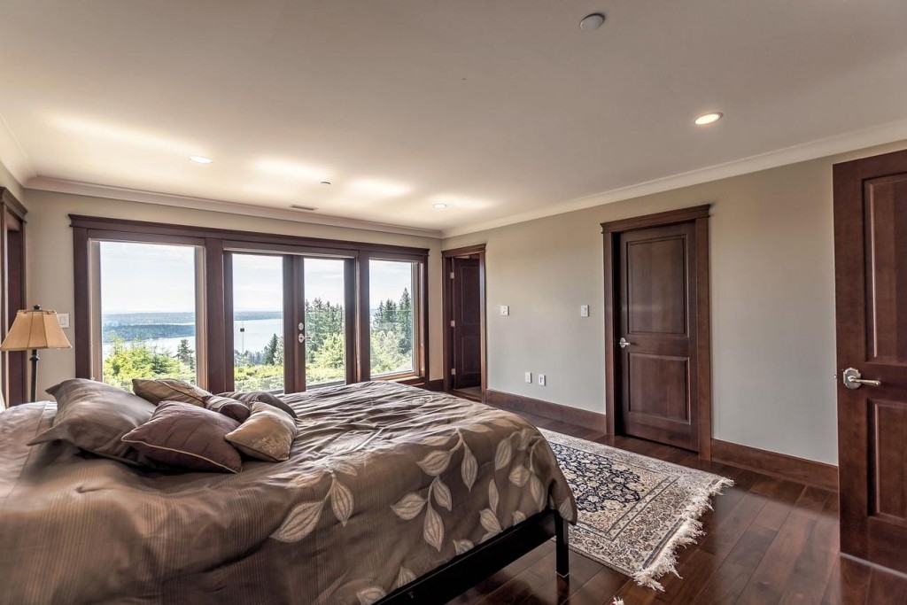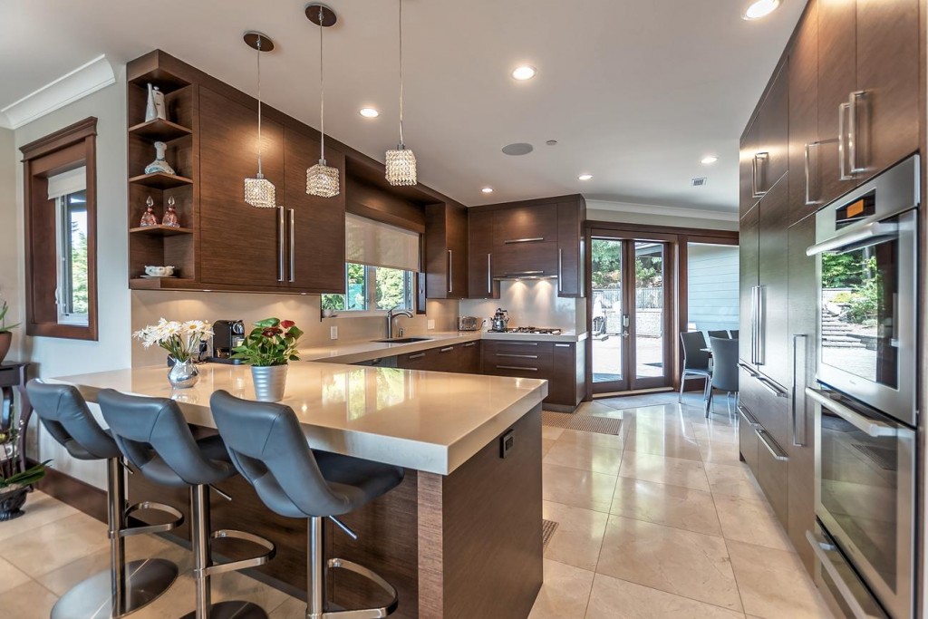An exquisite and thoughtfully designed 7,726 square feet mansion, you know that you are in for a luxurious experience. It has a modern structure and built with high quality materials, you can’t go wrong with this home that it’s such a beauty whether day or night. At almost every corner, there’s a floor-to-ceiling window that offers you bright and natural light by day, and relaxing vibe at night. With an open floor plan in mind, expect every area to be accessible to the other. An airy and spacious living room with an easy access to a beautiful view of the downtown, Lions Gate Bridge, Stanley Park, and the ocean, it sounds perfect for both entertainment and relaxing with family. A fireplace has been provided, and seems to compliment the floor-to-ceiling door and window at the end of the room. The dining area proves to be an extended space for entertainment because of its open design and easy access to the living room and outdoor area. You won’t run out of space and storage in this home’s modern and sleek-looking kitchen with surrounding windows to provide you natural light. Feel free to explore with its roomy counters for whipping something up or simply easy dining for two. A mini dining area is located at the corner near the kitchen and just beside the outdoors for that scaled down dining experience.