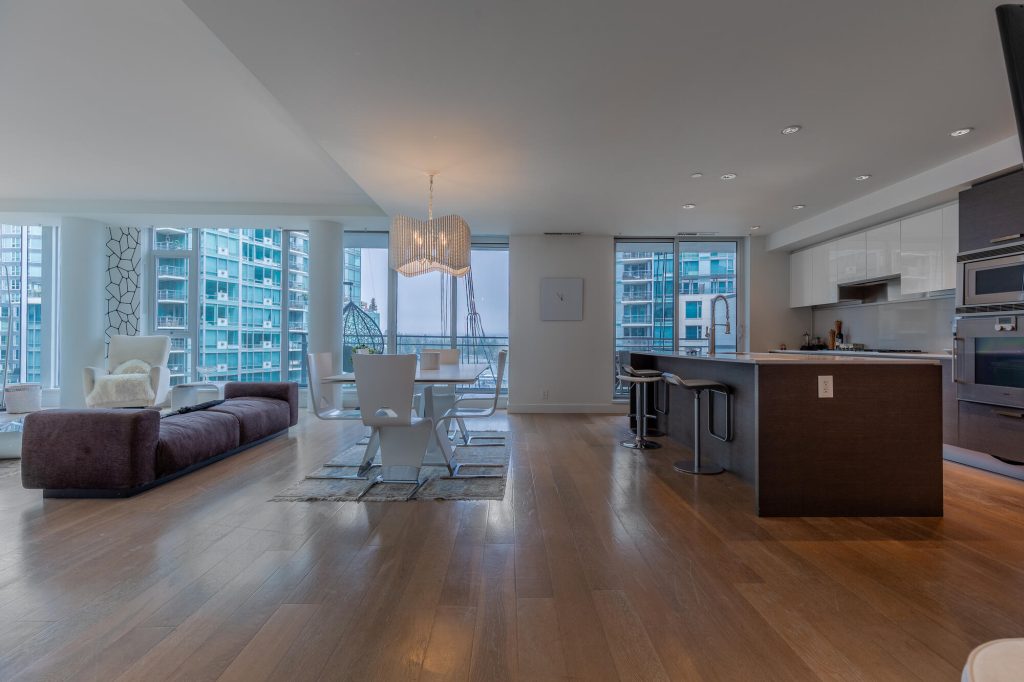 Welcome to award winning West Pender Place! With only 2 units on the floor, this 3 bed 3 bath unit features amazing floor to ceiling windows with 180 degree stunning views of Coal Harbour Marina, City, Stanley Park & Mountains. Equipped with a gourmet kitchen w/ Gaggenau appliances over looking open concept living room. The Master bedroom includes a spa ensuite with freestanding tub and a walk in shower. Brushed oak flooring and over-height 9'ft ceilings throughout. West Pender place offers resort amenities; 24 hour concierge, modern gym, party room w billiards table, meeting room, indoor pool, saunas and rooftop patio with BBQ. Few steps to the seawall, restaurants, and more! 2 parking stalls & 1 locker storage+ Bike Storage. Call for your private viewing today!
