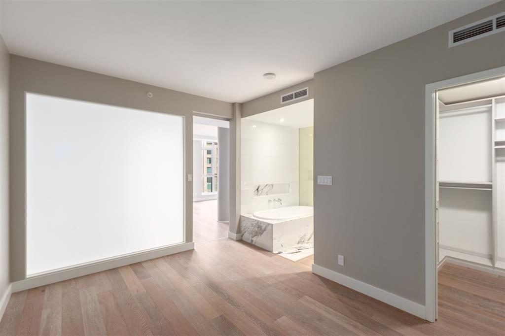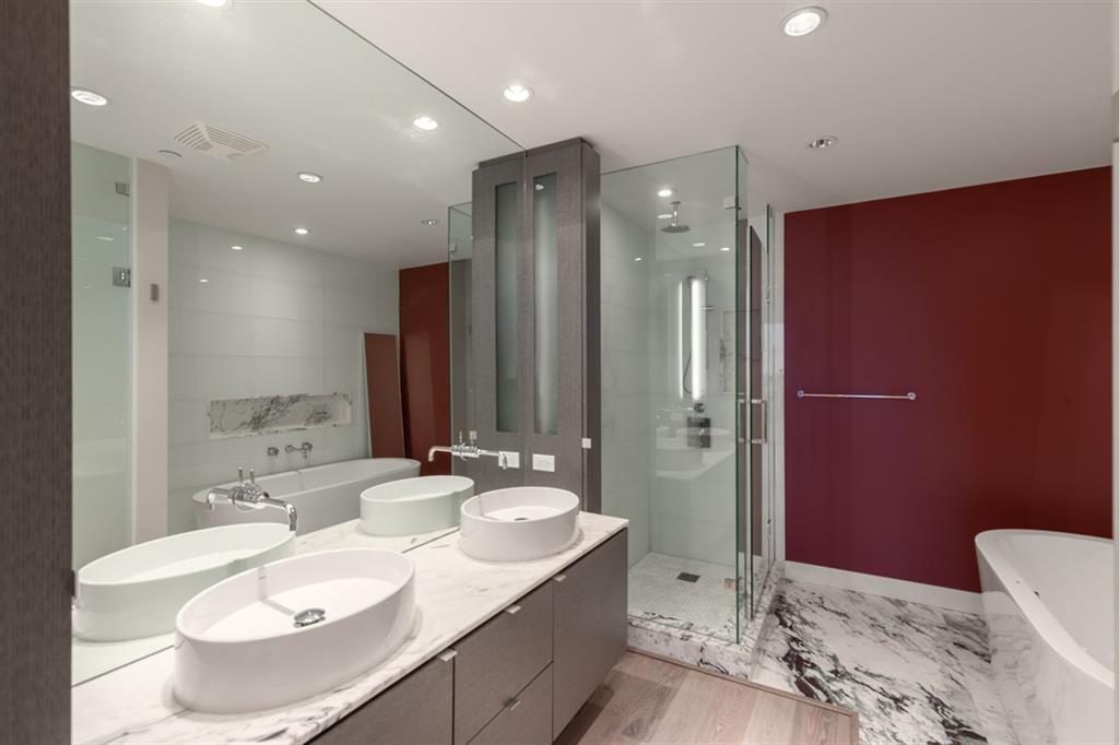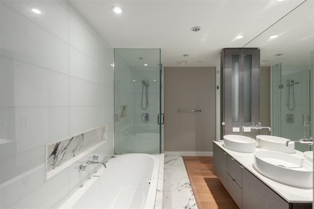 Welcome to West Pender Place, one of the most coveted addresses in Coal Harbour. This sprawling 2 bed, 3 bathroom property has been thoughtfully designed w/ 2 large bedrooms w/ ensuite in each, large soaker tubs, & on opposite sides for privacy. Entertain w/ ease in this open concept floor plan & Dada Italian kitchen, German Gagganeau appliances, brushed oak flooring and spa-like bathrooms with Italian marble slab countertops & flooring. Outdoor space can be accessed through the living room as well as master bedroom & is 7"10 wide by 24" long. Building has excellent amenities; 24 hrs concierge service, in-house caretaker, guest suite, large gym, saunas, pool & outdoor garden with Gas BBQ. 2 side by side parking & 1 storage