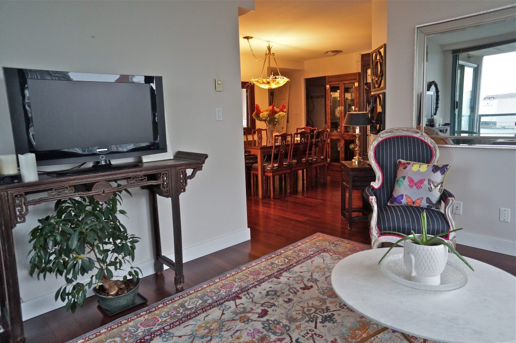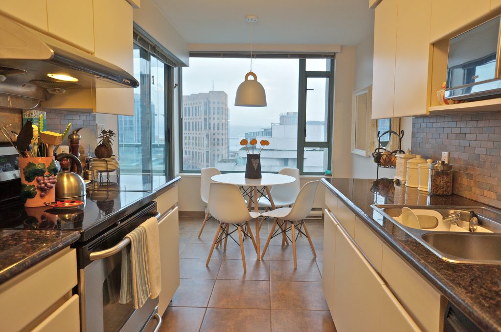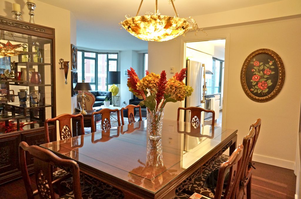 Search no more! This Rosedale Gardens is the perfect apartment for you! It's a 1,034 square feet space with 2 bedrooms and 2 bathrooms. And the view of False Creek is an added bonus. Everything is bright and well-proportioned here, a result of the open plan arrangement and oversized picture windows everywhere. The living area, just as bright, allows you access to a sizeable balcony when the urge to take in even more sun and air hits you. A gourmet kitchen comes with high-end appliances, Euro style cabinetry, even a breakfast bar. Underfoot, from the dining room to the living area, runs a beautiful wood laminate floor. The two bedrooms are generously sized, the master bedroom with its 4-piece ensuite. Imagine what life would be like here if you lived here! You'll be in the exact center of Vancouver's cultural soul, with easy access to the best it can offer by way of shopping, dining, entertainment and art. The Rosedale Garden is on the crossroads of Hamilton and Smithe, a mere half-block from famous ole' Robson. This close proximity to Robson puts you in walking range of a (very) long list of popular luxury retail outlets, restaurants, the Skytrain and all manner of public amenities. If this is what you were looking for all this time, this unit at the Rosedale Garden has your name on it. Hurry! Call us now to schedule a viewing.