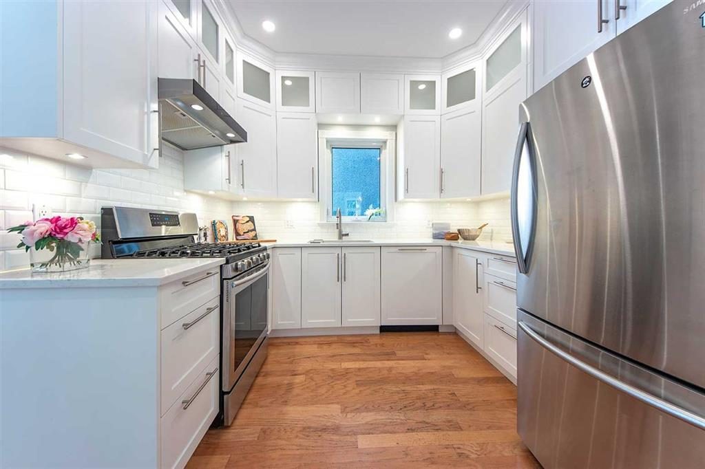 An outstanding 3310 sq.ft., 4 bedroom home w/legal 2 bedroom suite in one of the best Kitsilano pockets. This home was substantially renovated for modern & comfortable living while preserving all traditional charm through leaded glass windows, wood trim and 10 ft ceilings. The traditional layout on main level features vast principal rooms: a bedroom, chef-inspired kitchen, formal dining & delightful family room w/gas fireplace and access to a large, sunny south facing deck. Additional 3 bedrooms and 2 fully upgraded, modern bathrooms on the upper floor.