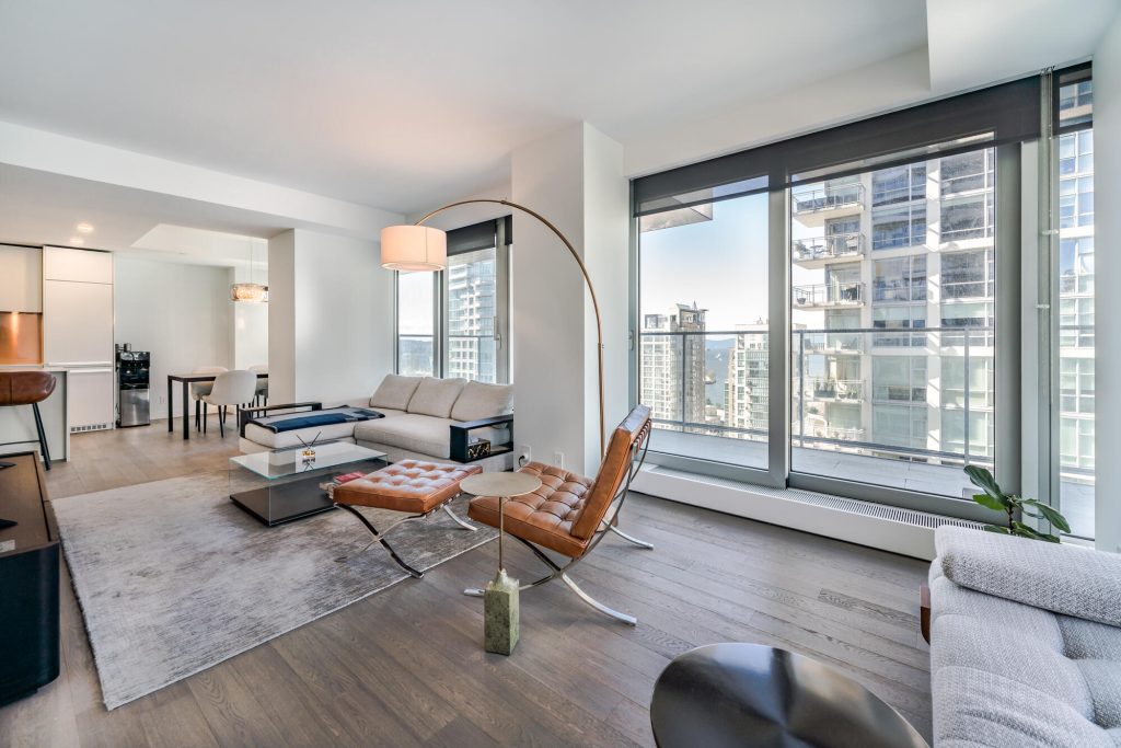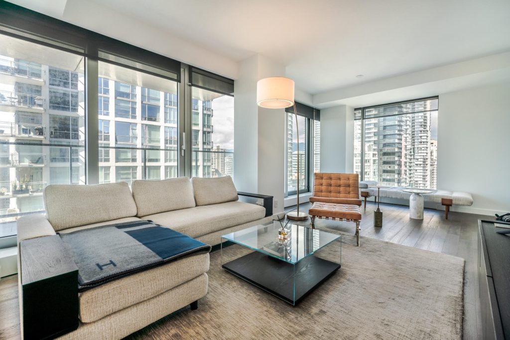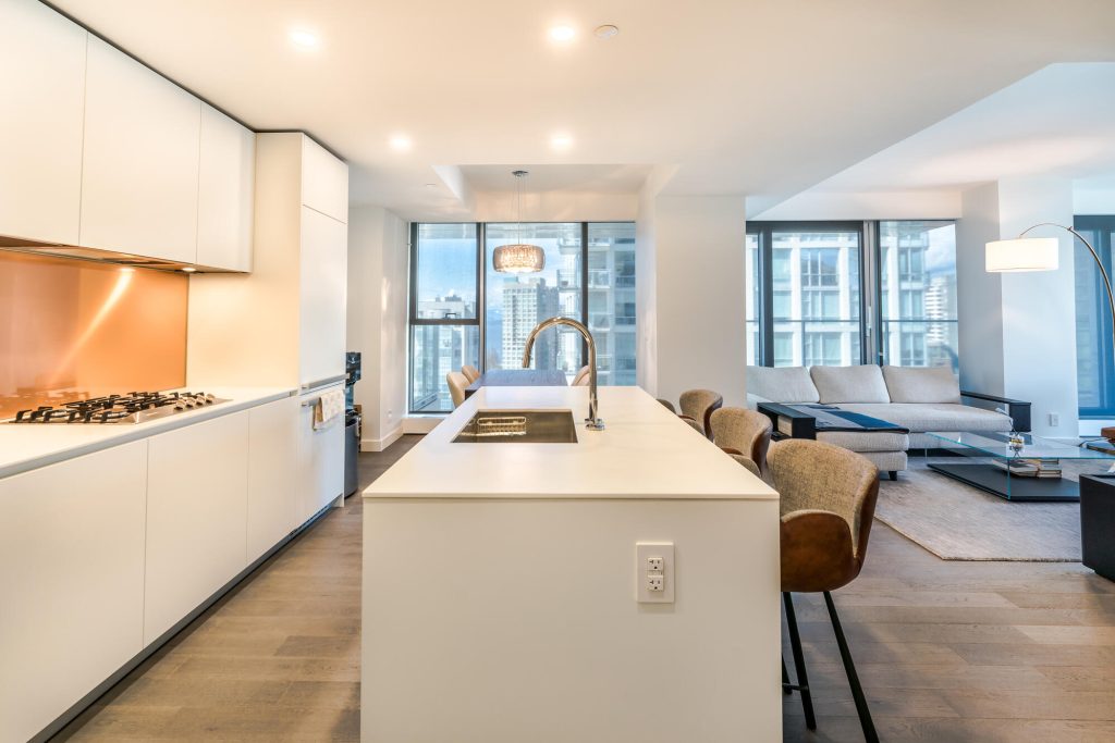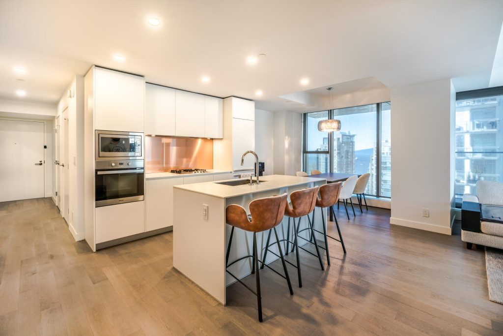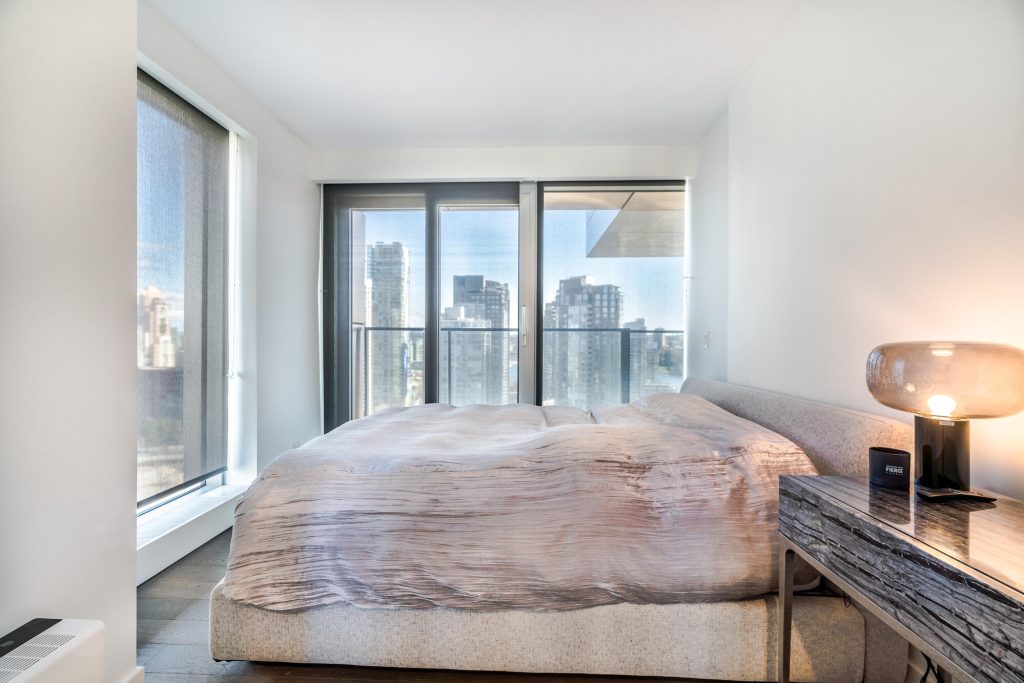 One of Vancouver's landmark buildings, Vancouver House! This modern architectural tower features 2 bedrooms and 2 bathrooms with city and water views. The unit features a large balcony, floor to ceiling windows, Bjark INgels Group interior with gourmet kitchen and large walk in closet in the master bedroom. The building has a state of the art gym, swimming pool, and concierge service. Below you will find all the stores and restaurants at your finger tips, such as: London Drugs, Fresh Street Market and Autostrada etc. 1 parking included along with Gas and Hot water. This property is available unfurnished at 1 year term